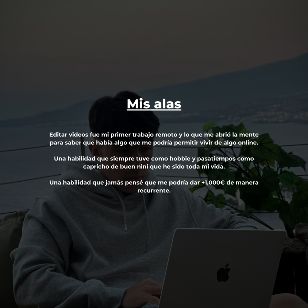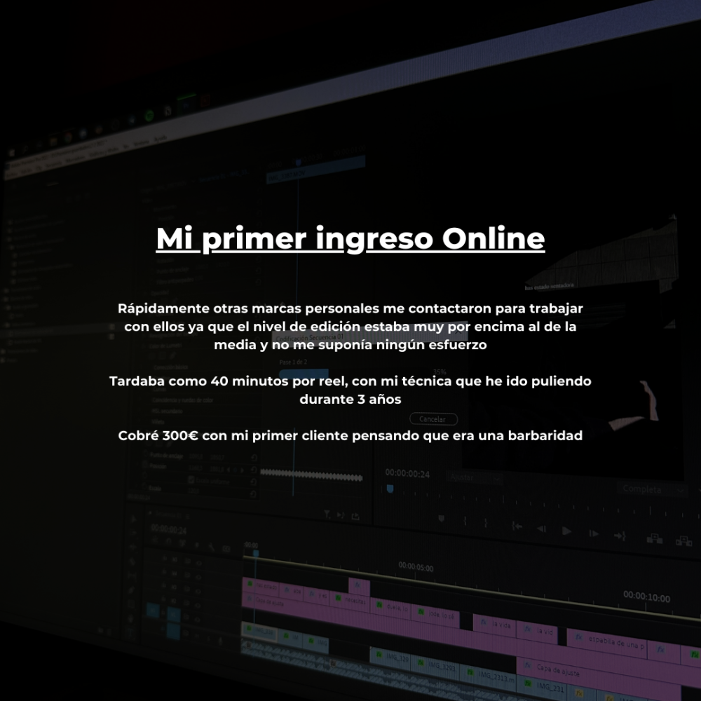 - La formación está estructurada para que aprendas a editar en tu primer día y en las primeras semanas hayas conseguido mínimo 1 cliente.
