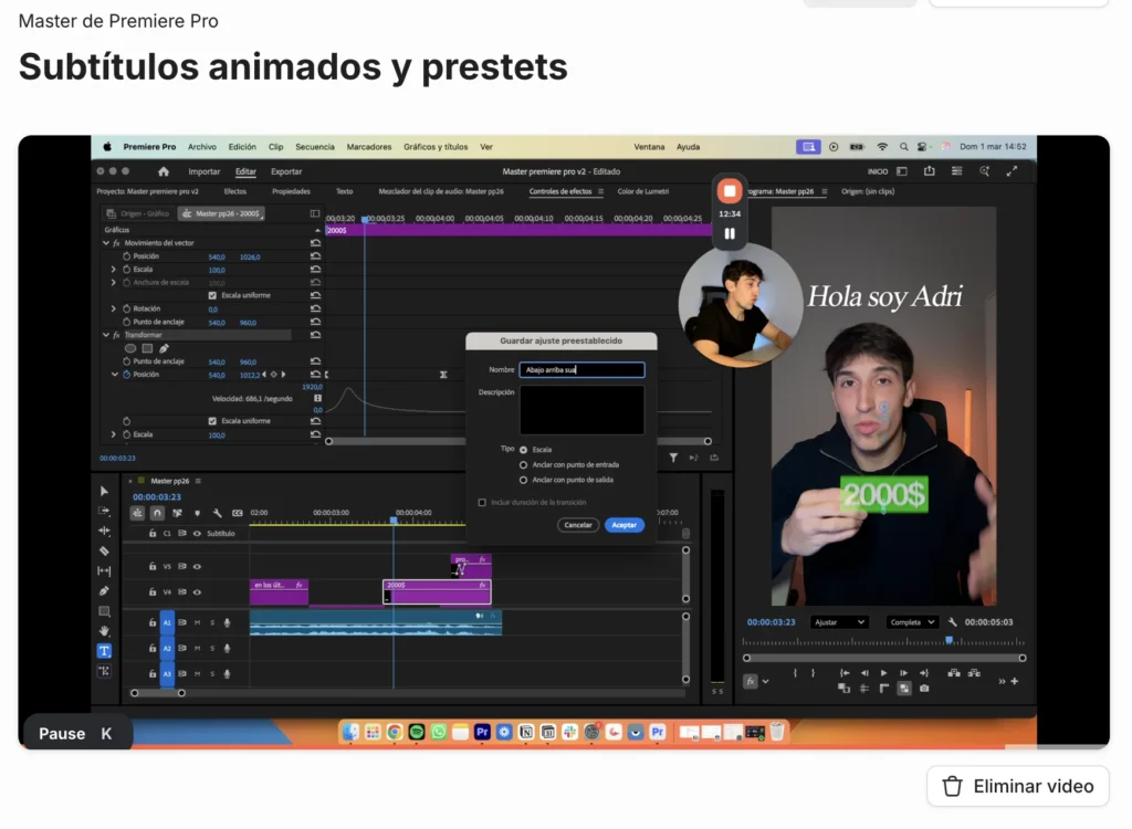 Domina premiere pro para editar rápido con +4h de contenido dividido por módulos para que puedas ir a tu ritmo